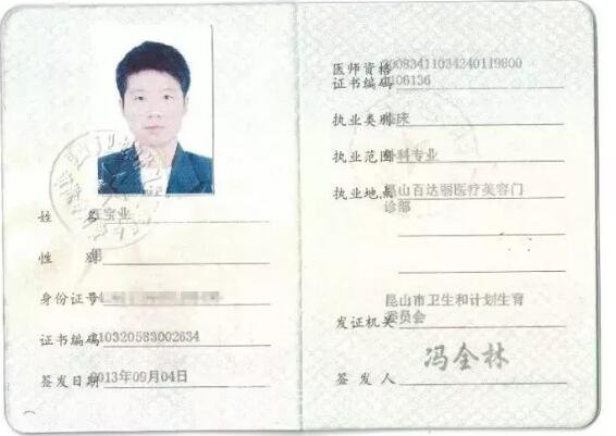 《醫(yī)療美容主診醫(yī)師證》
