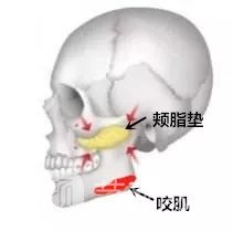 即面頰部位一塊脂肪突起來形成的三角形頰脂肪體,位于顴骨下方、咬肌前緣、嘴角外側(cè)的嘟嘟肉啦↓