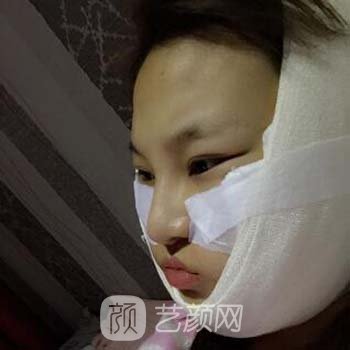 第一天感覺頭真大。現(xiàn)在因為頭上纏著紗布,戴著頭套,感覺緊繃難受,臉腫的很厲害。我還是覺得有些疼,但是醫(yī)院的醫(yī)護人員說很正常,不用太擔心。現(xiàn)在吃東西感覺兩邊特別疼,只能喝一點水,吃點流食。醫(yī)生還告訴我,這些天我必須避免吃東西,而且我不能洗臉,這讓我感到較為不舒服。為了以后讓自己的臉更漂亮,我只能接受這些。