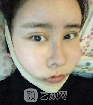 回到病房的時候,我是一個昏迷的護士,把我叫醒,告訴我手術成功了。下圖是剛做完手術的我。頭上套著彈力頭套,臉腫得像豬頭,連眼睛都睜不開。當我咳嗽打哈欠的時候,整張臉都會感到劇烈的疼痛,尤其是張嘴吃飯的時候,我都不敢吃。我每天吃一些牛牛奶,雞蛋羹,小米粥之類的,感覺瘦了,挺好的,可以省減肥?;謴土藥滋?,臉也沒那么疼了,心情也就好了。