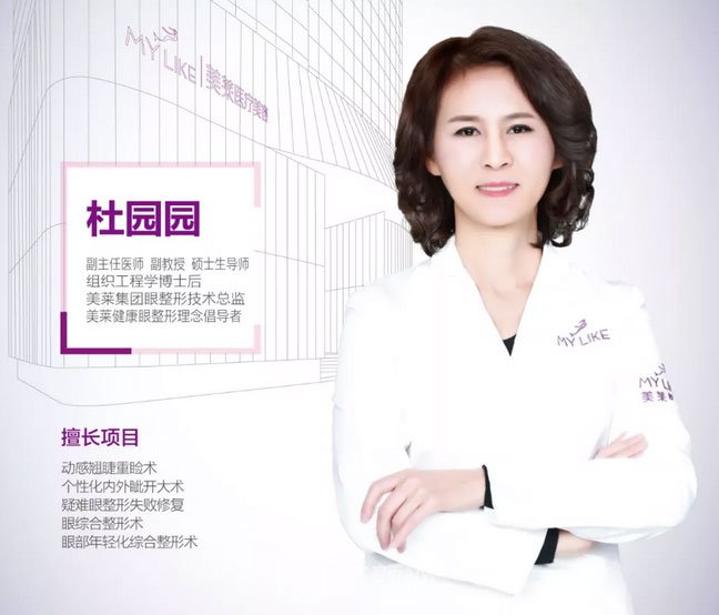 杜園園:教授,對于眼部失敗整形修復,也有很深的造詣,尤其擅長眼角“蓄水池”再造等高難度眼部修復手術(shù),被眼整形失敗患者稱為“眼部修復的金手指”,只要經(jīng)過杜教授的修復,均能得到比較滿意的術(shù)后修復果。從事整形美容外科專業(yè)十余年,擅長眼部整形,追求自然、時尚、個性化風格及人性化服務(wù)設(shè)計理念,眼部手術(shù)風格細膩,自然微創(chuàng),主張微創(chuàng),恢復快、個性化,和諧化的手術(shù)果。至今已幫助數(shù)萬求美者美眼蛻變。
